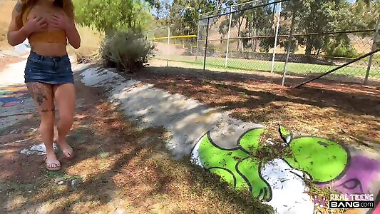 Bombshell redhead Penelope Sanps comes to a wild pervy outdoor porn casting and gets her pussy and mouth explored with directors cock