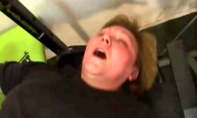 2 Chicks Watch How a Voluptuous Brunette Gets Fucked in the Gym