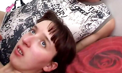 Two sexy brunette teens are sucking big man sausage - homemade amateurs - homeporn POV
