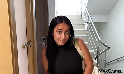 Large tits of young Venezuelan girl provokes curiosity to stranger and nails her after massages