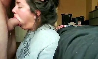 Eyes Covered and handcuffed submissive slut learn how suck dick and take jizm on her face and in mouth! Hard full homemade