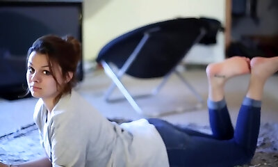 Slim Bubble-arsed Babe In Pantyhose Turns Her BF On With Footjob, Then Gets Her Drilled & Cummed