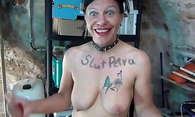 Flexi Sexy Blonde Shemale Sucks Her Dick And Spreads Her Ass With a Gigantic Dildo In a Yoga Pose